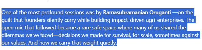 - A bio-fertilizer founder found resonance with a climate-tech innovator.