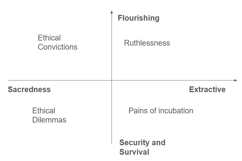 As I shared my reflections and the dilemmas of the Agripreneurs Retreat with my Yoga Mentor Raghu, he mapped a beautiful quadrant that navigated the geography of these ethical quandaries.