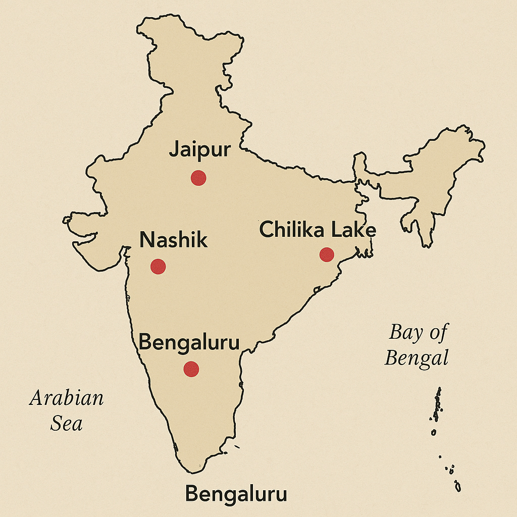 The Parikrama1 ritual which started in January 2024 with the first Agripreneurs retreat in the Western part of India (at Nashik with 25 founders), traveled South (at Bengaluru with 30 founders), walked ambitiously towards the north (at Jaipur with 52 founders) and finally walked East (at Chilika Lake with 57 founders) in April 2025.