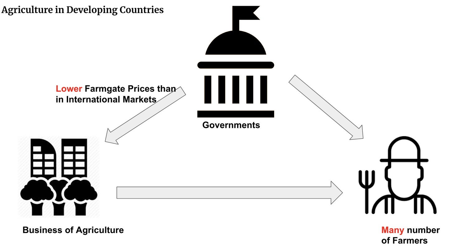 How come we end up seeing more subsidies in developed countries with smaller farmer populations and more exploitation in developing countries with larger farmer populations?