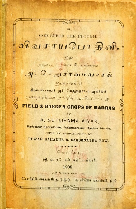 My maternal great-grandfather was a wonderful agriculturist (in my biased view) who collaborated with G.A.Natesan to publish “Farming Guide” in his mother tongue Tamizh in the year 1908, based on his farming advice articles in the popular nationalist tamizh language newspaper “Swadesamitran” that was founded in 1882.As the kind librarian who reserved the book upon my request and wrote the sweetest email I will cherish for a life time wrote, “The book is part of our special collections, it can only be read in the Asian & African Studies Reading Room, on the 3rd Floor of our St Pancras main building in London.”