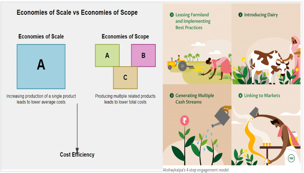 Fundamentally, agricultural activities that require intensive labour inputs on an everyday basis, such as cattle breeding (for milk or meat) require multipurpose collaboration and hence economies of scope are much more suited than economies of scale to build the DNA of farmer enterprises.