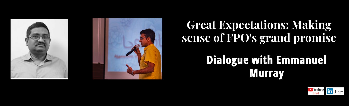Just wanted to send a quick update about a Live Event I am doing on making sense of the promise of Farmer Producer Organisations.(FPOs). Some time back, if you remember, I began my coverage on Farmer Producer Organisations.