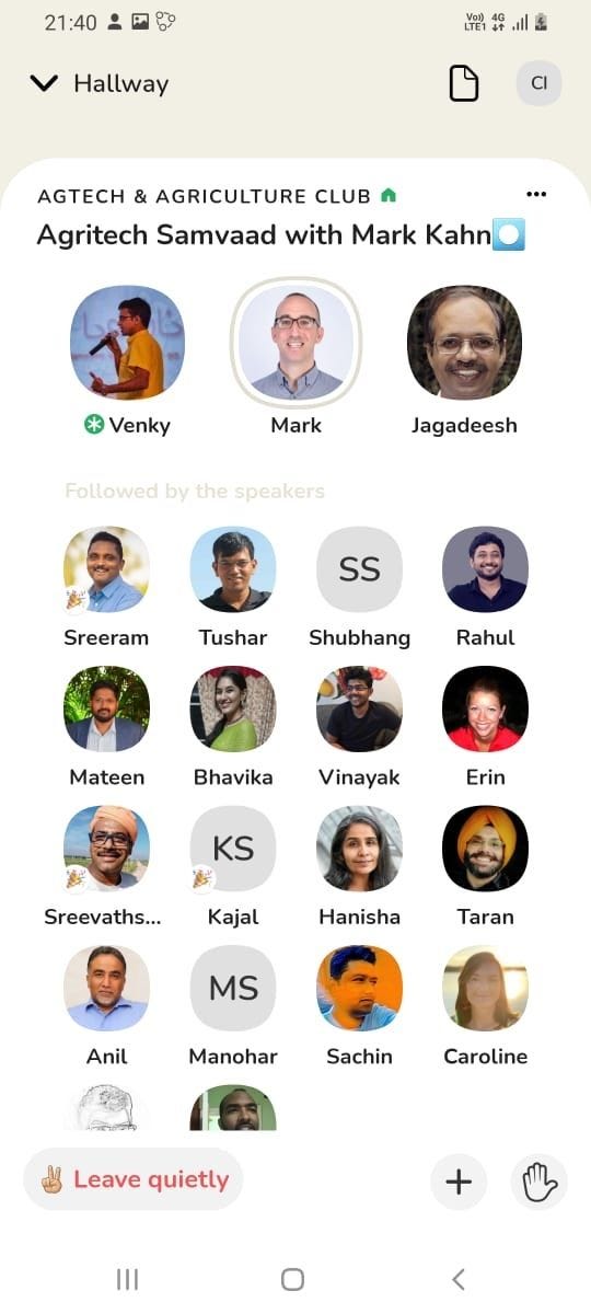 We had the second edition of Agritech Samvaad last Friday with a 120 min long Clubhouse dialogue with Mark Kahn, one of the earliest prime movers in this space.