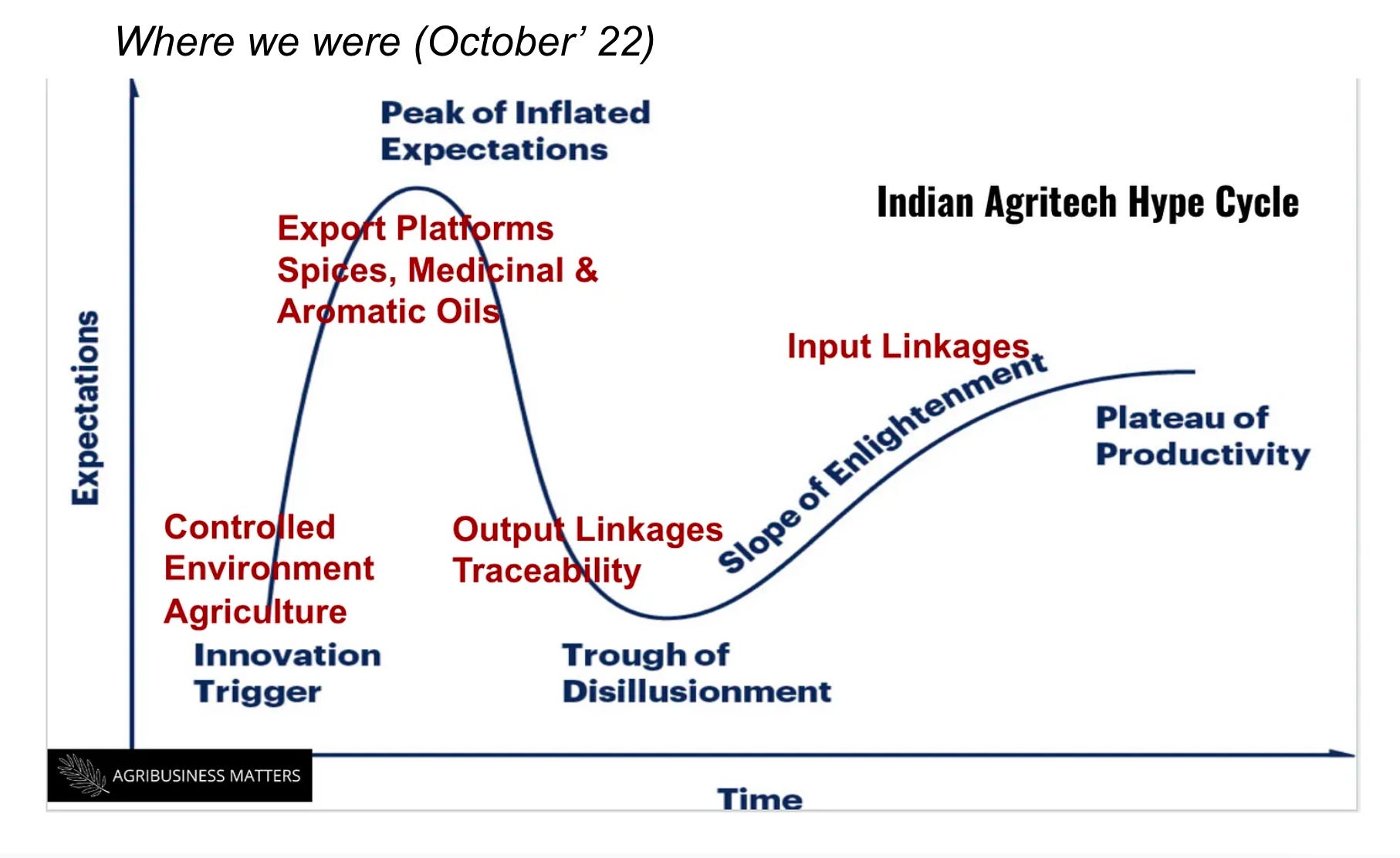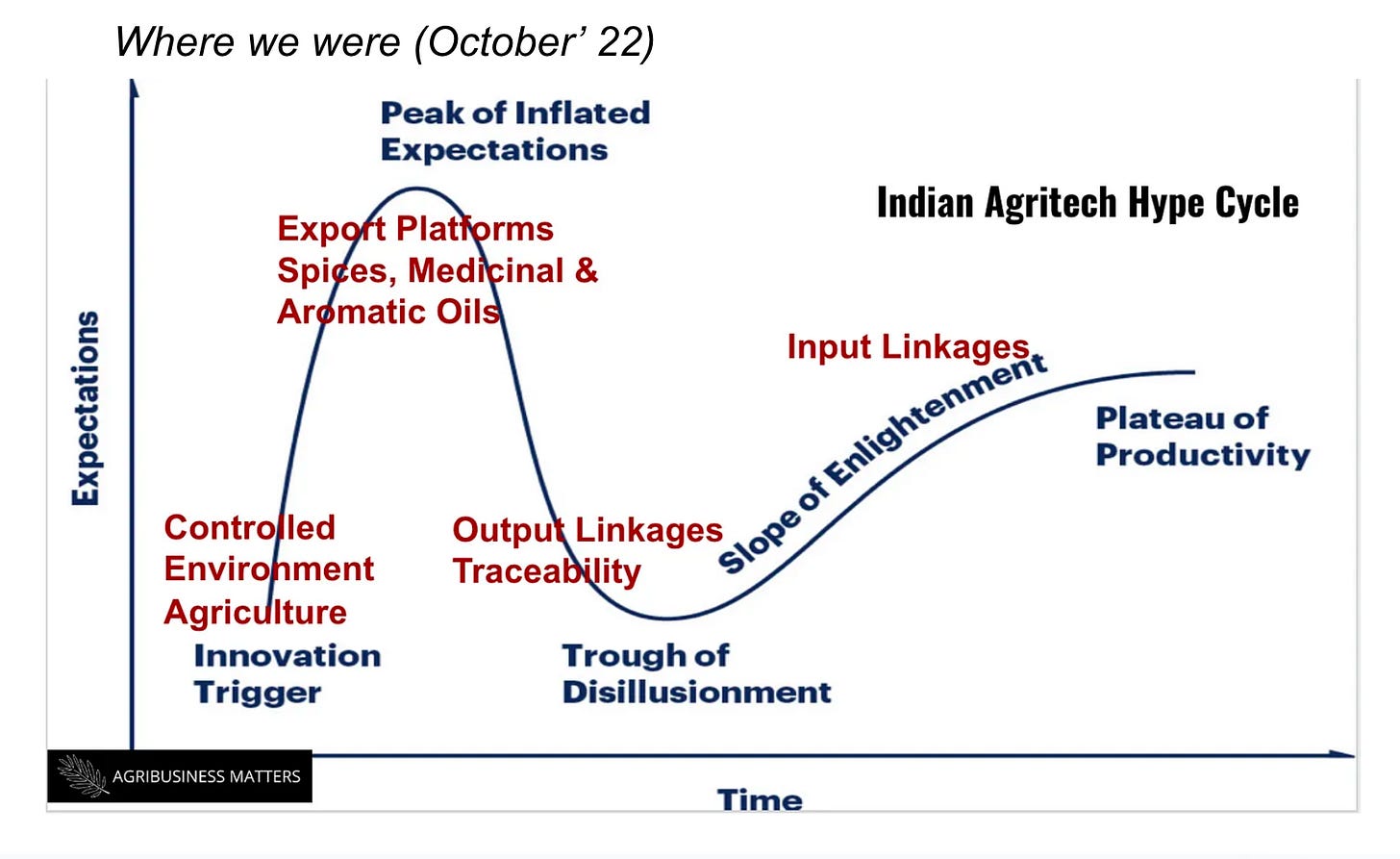 One year later, in Oct’23, if you ask me, the 2023 Indian Agritech Hype Cycle currently looks like this
