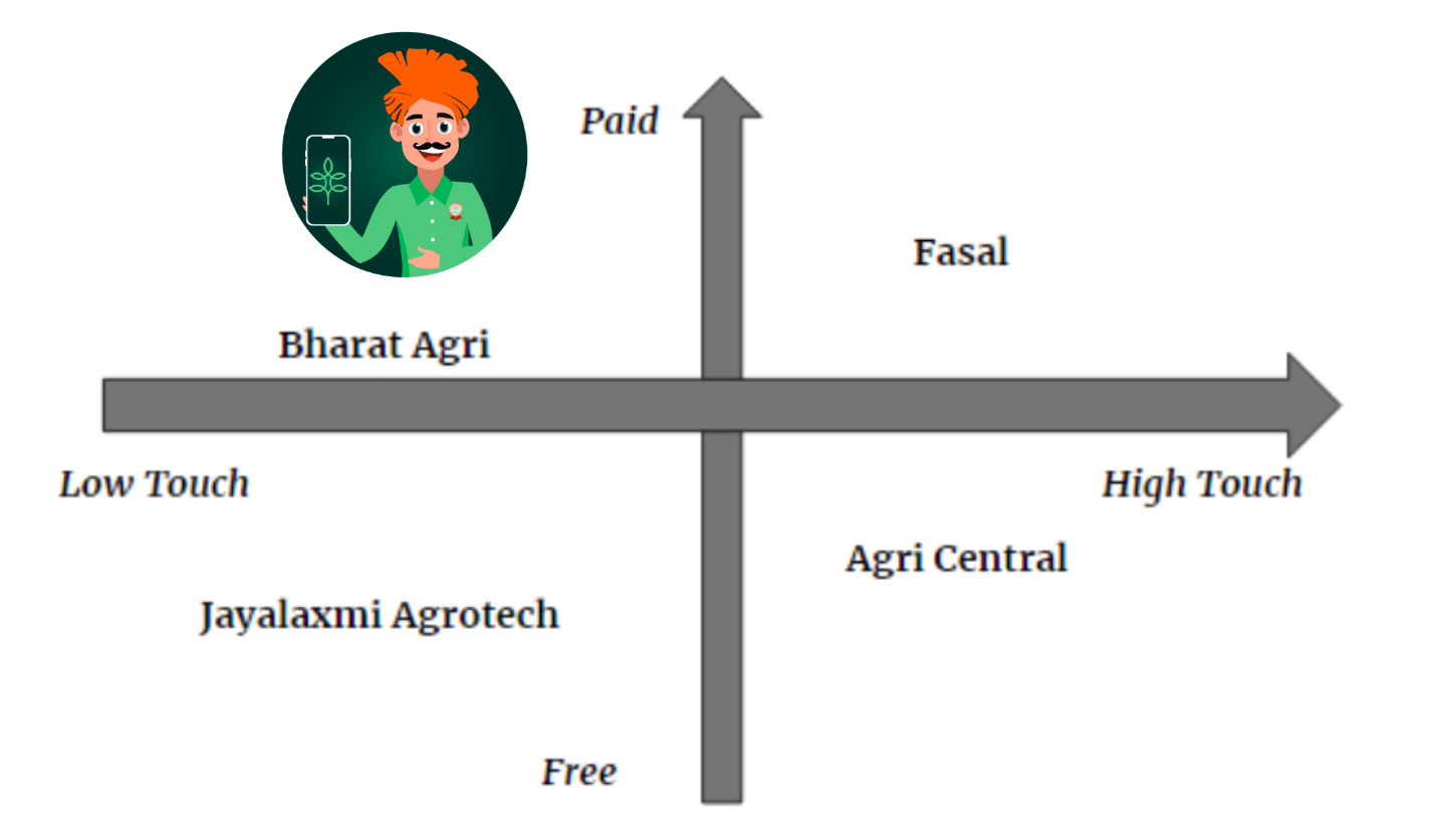When I sketched the Digital Agronomy Quadrant for Indian Agritech in 2021, I had placed Bharat Agri in the low-touch, Paid Quadrant. Today, I would include Bharat Krushi Seva in the same quadrant.