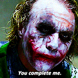 JOKER: Kill you? I don't wanna kill you. What would I do without you?.....No? No. No! No, you- you complete me.