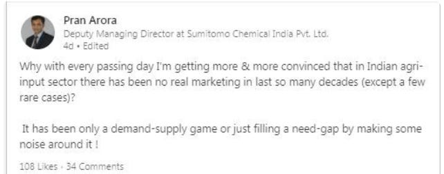Agri-Input marketing has largely been illegible. I hope such market-driven endeavours bring much-needed transparency and accountability to this sector.