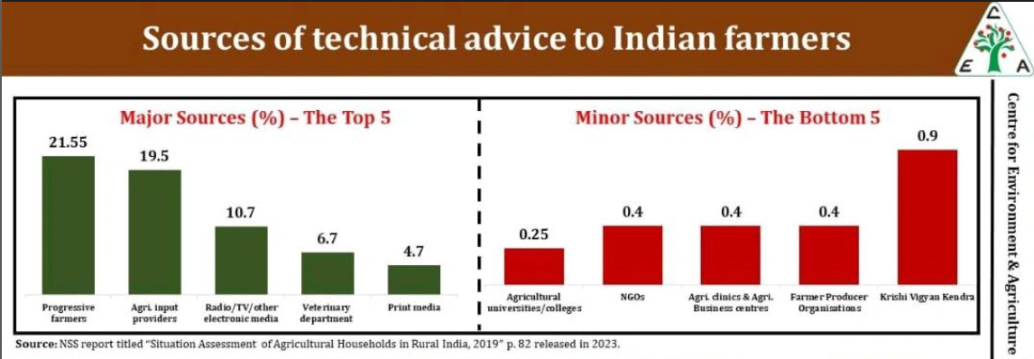 Before unpacking Digicides’ partnership with Truecaller, it is important to understand the sources of technical advice for farmers. Progressive farmers followed by private agri-input providers constitute the major sources of technical advice to farmers.
