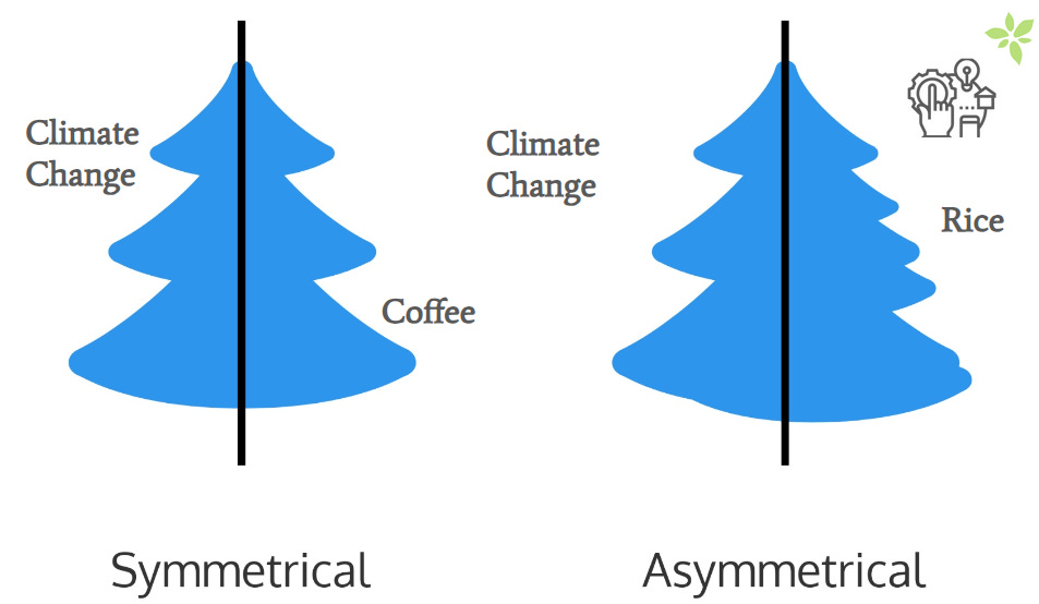 When you talk about a commodity crop like coffee, you could argue that the impact is symmetric- coffee impacts climate change as much as climate change impacts coffee production systems.