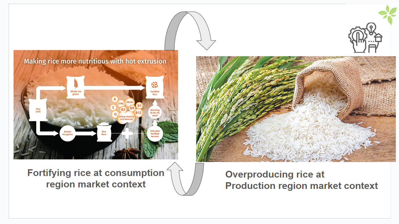 How are we responding to these shifts and mitigating the risks? Today, efforts are underway to decarbonise rice on the production side of things and fortify rice on the consumption side of things.