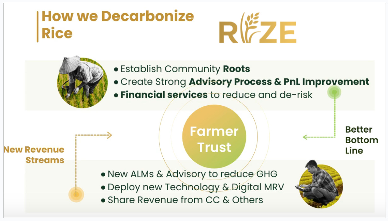 In Southeast Asia, emerging climate-first agritech venture players like Rize are taking the lead in bundling technology, inputs, agronomy, and credit strung through climate finance in deploying these models at scale in smallholding contexts.