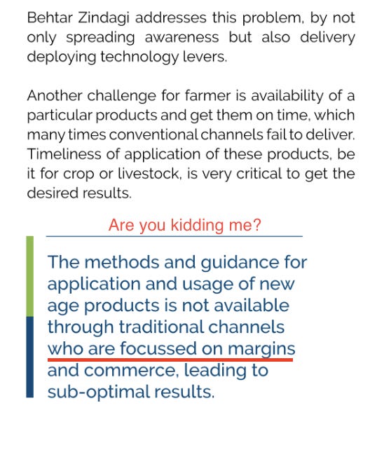 Vision #1: Traditional Agri-Input Retailers don't matter in the long run, as they never had the right skin in the game in the first place, often colluding with agri-input manufacturers at the expense of farmers.