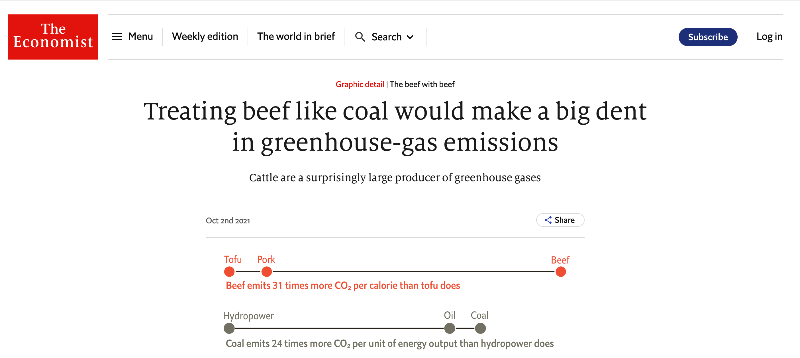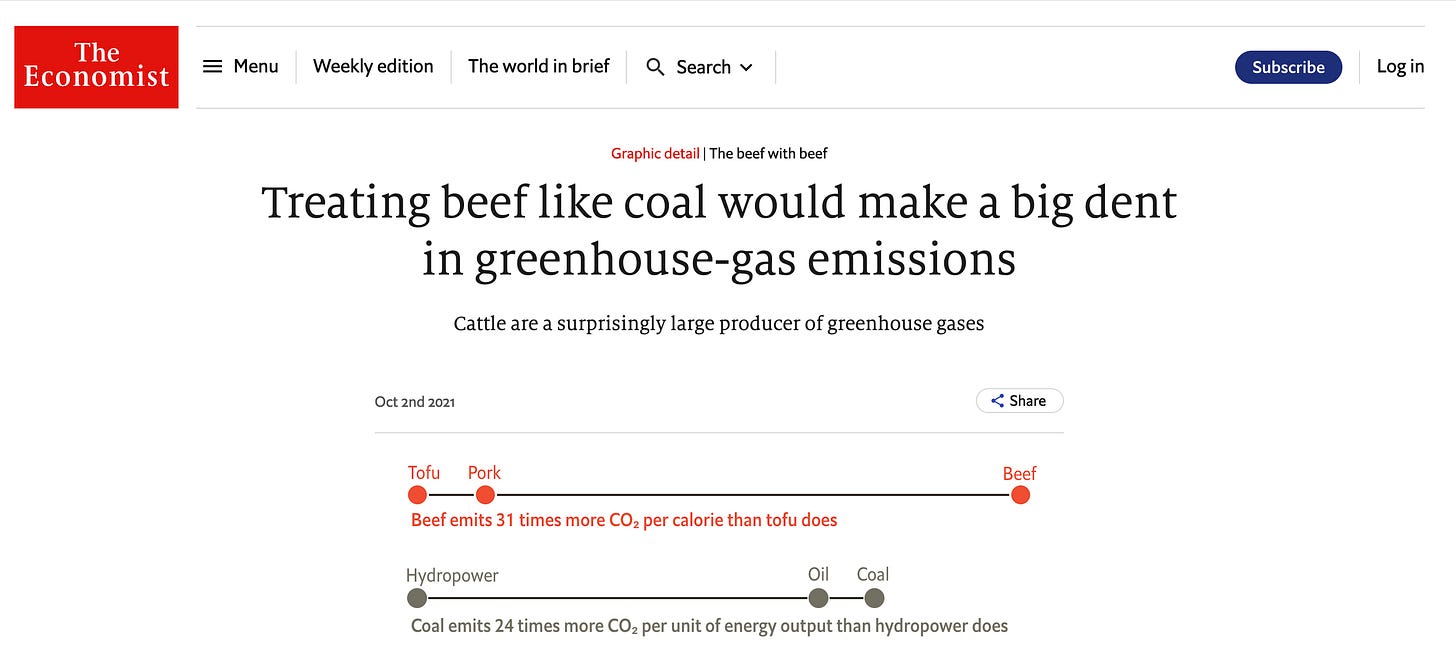 “Treating beef like coal would make a big dent in greenhouse-gas emissions”.