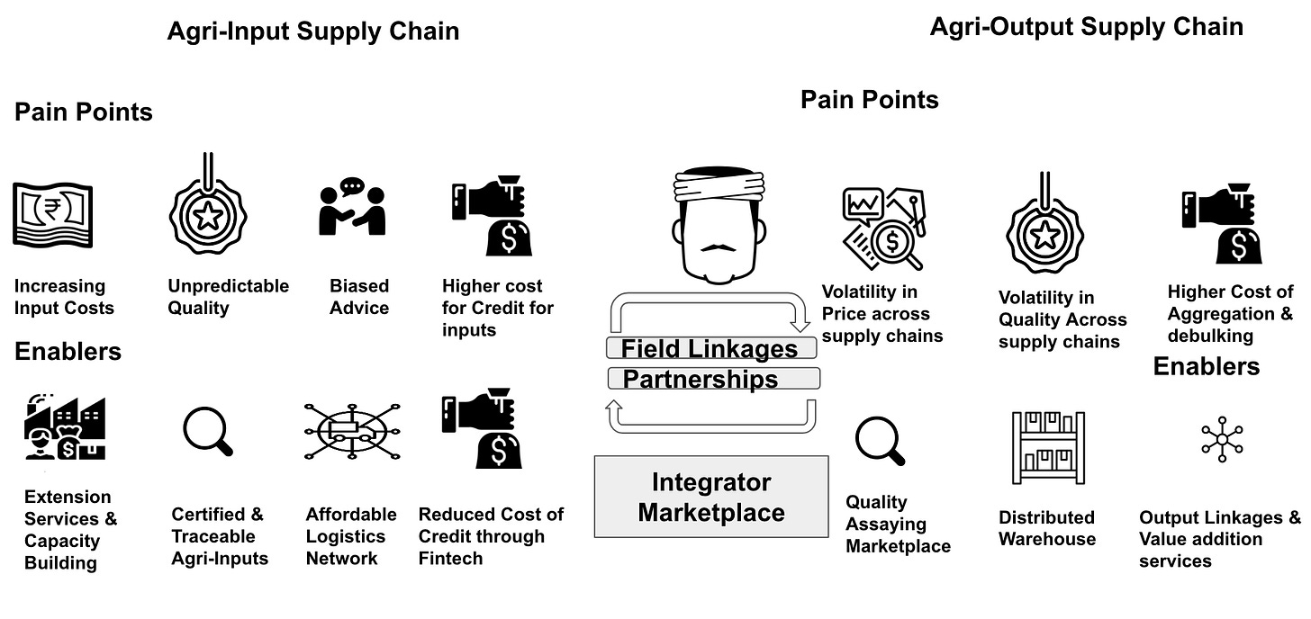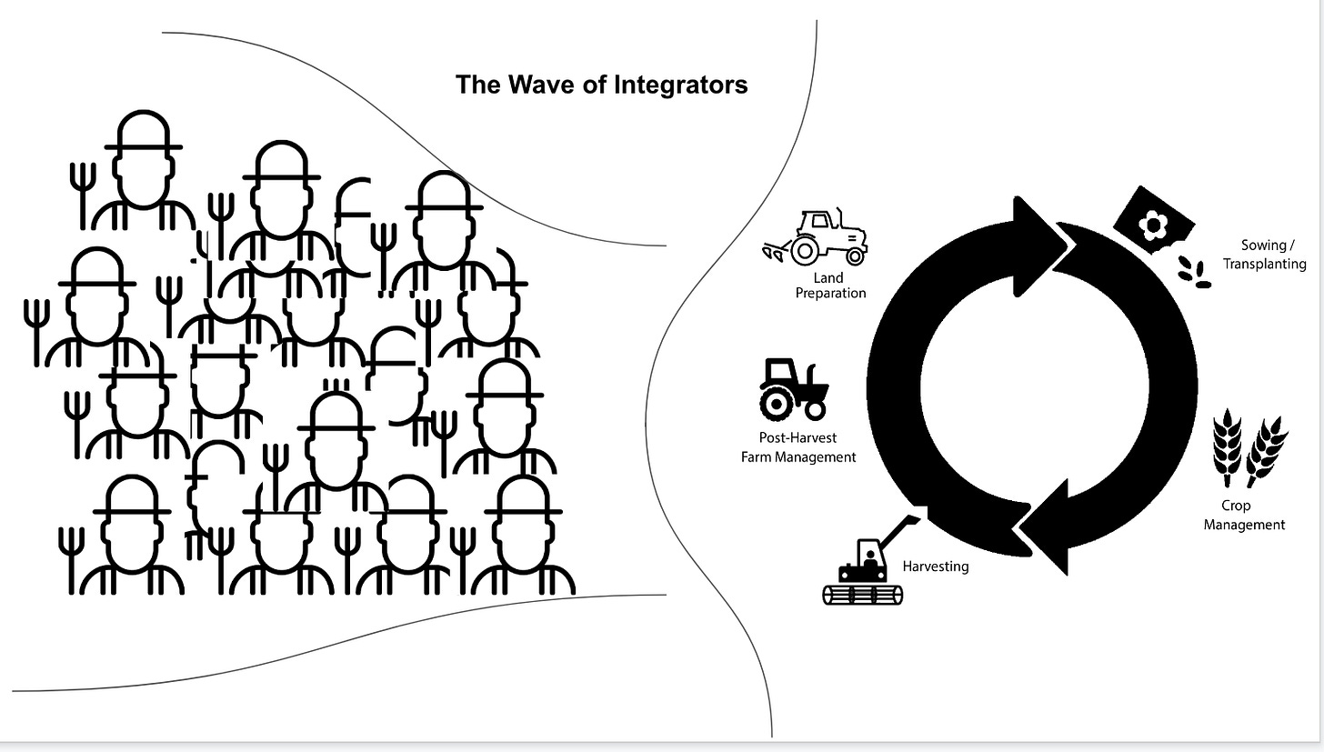Aggregators commoditize suppliers, while integrators work on the basis of differentiation, providing personalized end-to-end services, across the agri-input and agri-output supply chain.